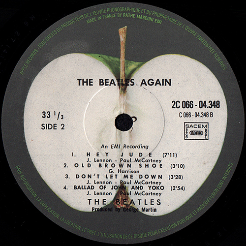 Publishing Credit / without STEREO ) In either late 1971 or in 1972, French EMI albums began using SACEM instead of BIEM for publishing rights. The publishing symbol for SACEM appears on all labels made after 1971. The credit "Imprimé en France" and "OFFSET FRANCE (printer house name)" logo were printed at the bottom of the back cover. 1970 / 2C 062 04348 : First press with Apple label / BIEM / PC Ⓣ / printer Offset France / Natural colored front cover 1970 / 2C 062 04348 : Apple label / BIEM / PC Ⓣ / printer Offset France / Brown colored front cover 1970 / 2C 062 04348 : Apple label / BIEM / PC Ⓣ / printer IDN / Brown colored front cover 1970 / 2C 062 04348 : Apple label / BIEM / PC Ⓤ / printer Offset France / Brown colored front cover 1971 / 2C 062 04348 / Apple label / SACEM / Path.Marconi / PC Ⓤ / printer Offset France / Brown colored front cover 197? / 2C 064 04348 / Apple label / SACEM / Path.Marconi / PC Ⓑ 197? / 2C 064 04348 / Apple label / SACEM / Path.Marconi / PC Y sticker 1973/7? / 2C 066 04348 / Apple label / SACEM / Path.Marconi / PC Ⓨ 1978 / 2C 066 04348 / Apple label / SACEM / Path.Marconi / PC Ⓐ?? 1978 / 2C 066 04348 / Apple label with or without STEREO / SACEM / Path.Marconi / "PM251" (=This record) *PC= Price Code The Beatles united for a final photographic session on 22 August 1969. It was also the last occasion in which all four members were together for band duties; thereafter their only meetings were business-related. The shoot took place in the house and grounds of Tittenhurst Park, John Lennon and Yoko Ono's home in Sunninghill near Ascot, Berkshire. The couple had moved in earlier in the month, although they had bought the 72-acre estate in May 1969. The photo shoot took place two days after their final recording session together. The photographers were Ethan Russell and Monte Fresco, with additional pictures taken by The Beatles' assistant Mal Evans. *SACEM :Sacem means "Société des Auteurs, Compositeurs et Editeurs de Musique". The main role of this private and non trading company is to collect payments of authorsf rights and redistribute them to the original authors and composers and the publishers. Sacem also conducts initiatives to help its members and to support cultural events. *BIEM (Bureau International des Societes Gerant les Droits d'Enregistrement et de Reproduction Mecanique) handles the copyrights for 52 different countries. |