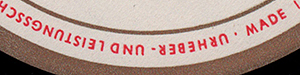 ST 33 in a circle for stereo edition. The rim print was: "URHEBER. UND LEISTUNGSSCHUTZRECHTE, BESONDERS VERVIELFÄLTIGUNG (AUSSER ZUM PERSÖNLICHEN GEBRAUCH), VERMIETUNG. AUFFÜHRUNG, SENDUNG, VORBEHALTEN" | |||