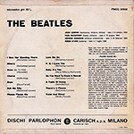 the release. 1st press 1st version of 11 label variations known COVER: Half laminated (rear cover only) boxed "Dischi Parlophon" logo bottom left on front; "DISCHI PARLOPHON logo CARISH s.p.a. MILANO" bottom on rear cover; "A. Saita - Milano" bottom right on rear cover. Misspelled title "There's A Plance" instead of "There's A Place" on the rear cover (in all versions of the 1st press). LABEL: dark red (rosso mattone) label (=this record) side A: misspelled on MISERY credit "McCartner" instead of "McCartney"; misspelled on BOYS credit "Don-Farrell" insted of "Dixon-Farrell"; NO BIEM LOGO / NO MECOLICO LOGO 2nd. press: dark red (rosso mattone) label side A: misspelled on MISERY credit "McCartner" instead of "McCartney"; CORRECT BOYS credit "Dixon-Farrell"; NO BIEM LOGO / NO MECOLICO LOGO 3rd. press: dark red (rosso mattone) label side A: misspelled on MISERY credit "McCartner" instead of "McCartney"; BOXED BIEM LOGO / NO MECOLICO LOGO 4th. press: dark red (rosso mattone) label side A: misspelled on MISERY credit "McCartner" instead of "McCartney"; BOXED BIEM LOGO / MECOLICO LOGO 5th. Press: purple red (rosso indaco) label side A: misspelled on MISERY credit "McCartner" instead of "McCartney"; NO BIEM LOGO / NO MECOLICO LOGO 6th. press: purple red (rosso indaco) label side A: misspelled on MISERY credit "McCartner" instead of "McCartney"; BOXED BIEM LOGO / NO MECOLICO LOGO 7th. press: purple red (rosso indaco) label side A: misspelled on MISERY credit "McCartner" instead of "McCartney"; BOXED BIEM LOGO / MECOLICO LOGO 8th. press: light red (rosso chiaro) label side A: misspelled on MISERY credit "McCartner" instead of "McCartney"; BOXED BIEM LOGO / MECOLICO LOGO 9th. press: light red (rosso chiaro) label side A: CORRECT credits on MISERY "McCartney"; BOXED BIEM LOGO / MECOLICO LOGO 10th. press: black (nera) label side A: CORRECT credits on MISERY "McCartney"; BOXED BIEM LOGO / MECOLICO LOGO 11th. press: black (nera) label side A: MISSPELLED "SAW HER STANDING THERE" instead of "I SAW HER STANDING THERE"; BOXED BIEM LOGO / MECOLICO LOGO (*)Carisch S.p.A.: Carisch was founded in 1887 by Giovanni Andrea Carisch and Arturo Jänichen with the aim of import and trading of scores and musical instruments. In 1894 the business extends to the musical publishing trade thanks to the aid of his two sons Otto and Adolfo. Furthermore in 1949 with the support of Alberto Carisch, they also found a recording company with the aim of publishing the productions of their own authors. In 1989 Maurizio, representative of the 5th generation of the Carisch family, decides to sell the property of Carisch to the Italian Warner Chappel Music. Under the leadership of Warner process of internationalization starts: in 1993 Nueva Carisch Espaņa S.L. borns. It acquires the Music Distribucion catalogue in 2000 and the publishing branch of Real Musical in 2005. In this way Nueva Carisch Espaņa becomes market leader in Spain for didactic, classical and pop music scores. In 1998 in France, first with the acquisition of the Imp France catalog and then, in 1999, with the acquisition of Musicom, the new company Carisch Musicom S.A. is established. |