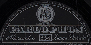 Parlophone black label in silver ink. The label design remained unchanged until 1968 / early 1969 when EMI printed its new "Parlophone" label. |