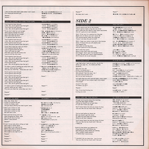 Edition. Issued to commemorate the 20th anniversary of The Beatles' Japanese concerts in 1966, the first rock concerts at Budokan, Translucent red vinyl, cutting done in Japan from the copy of the master tape strictly kept at EMI in England (maybe). The pressing and catalog number are identical to 1982-release version. Released the 10 Album (11LP) box set, limited to 1,000 boxes. Black EMI/Odeon label with silver print. The words "MFD. UNDER LICENCE BY TOSHIBA-EMI LTD. IN JAPAN" was printed at the perimeter on the label. "JASRAC" and "JIS mark" wereprinted on the label. According to the liner notes, "Lacquer discs cut directly in the UK from the original masters at Abbey Road Studios". However, it seems that Toshiba-EMI got a copy of the master tape from the UK and the cutting was done in Japan. Because the typeface of maatrix written on the inner groove is completely different from the U.K. disc. The obi: Custom Red obi. The commemorative custom red thick obi of the 20th anniversary of Beatles' Japan visit. It also features an EMI/Odeon logo, catalogue number and price information. While most Japanese records feature local music, a lot of music fans there like foreign music, as well. The language barrier in Japan presented a problem – should foreign album covers be changed for Japanese albums? The solution was the obi, which means “belt” or “sash”. The obi is a strip of paper, usually about two inches wide, that wraps vertically around the album cover, containing information about the artist and album in Japanese. As these strips of paper were fragile and easily torn, they are often missing, especially since consumers in the 1950s and 1960s attached little significance to them. Finding Japanese records made prior to 1970 that still have the obi intact can be quite difficult, and for some albums, nearly impossible. The inclusion of the obi can dramatically affect the price of some Japanese records, sometimes increasing the price by a factor of ten. JASRAC(*): Japanese Society for Rights of Authors, Composers and Publishers. To protect the copyrights of musical works, and to facilitate the utilization of musical works, thereby contributing to the dissemination and development of music culture. JIS(**): Japanese Industrial Standards (JIS) specifies the standards used for industrial activities in Japan. The standardization process is coordinated by the Japanese Industrial Standards Committee and published through the Japanese Standards Association. |