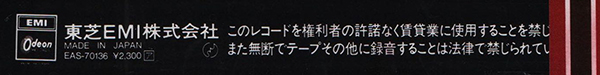 | RECORD COMPANY'S NAME | SLEEVE | Toshiba EMI Kabusikigaisha |