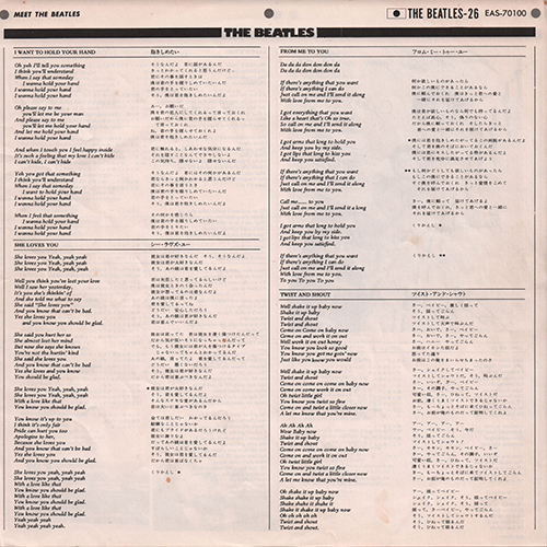 Apple logomark and "Toshiba EMI Limited." were printed at the lower right corner of the lyric sheet. | ||||