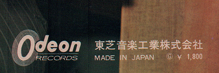 | Has a custom red / yellow obi. Odeon logo mark, catalog No. "OP-7549", and priced "¥ 1,800" were printed on the front of the obi strip. There is no order sheet on the back side of the Obi. "Toshiba Musical Industries Ltd." was printed on the strip. (Sorry, I don't have it.) |