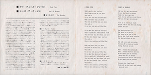 Odeon 2nd. sleeve. The words "Toshiba Musical Industries Ltd." and "G-¥370" were printed at the bottom of the lyric sheet. "The Odeon Hit Records ¥330" were introduced at the back of the lyric sheet. |
