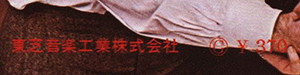 | The words "MFD. BY TOSHIBA MUSICAL INDUSTRIES LTD. IN JAPAN" was printed at the perimeter. | |||||
