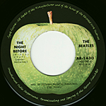 Reissue of #27-4. Light Green Apple label. In 1969, Toshiba had to reissue on the Apple label all the records previously issued on the Odeon label. And in the Apple label, there are two subtypes, TOSHIBA MUSICAL INDUSTRIES and TOSHIBA EMI. Further more, the early copies of the APPLE-TOSHIBA MUSICAL INDUSTRIES type have dark Apple on its label, though the late copies have light one. This single was manufactured two ways: both Black and Red vinyl. |