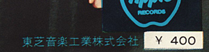 Apple logo,"Toshiba Musical Industries Ltd." and price "¥400" were printed at the bottom of the lyric sheet. | ![]() |