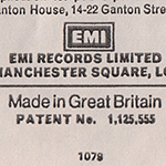 "EMI" marks, which are white with black print (reversed). "ALL RIGHTS OF THE PRODUCERc" printed at the start perimeter print. |