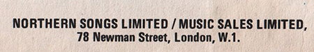 | PUBLISHER'S CREDIT | NORTHERN SONGS