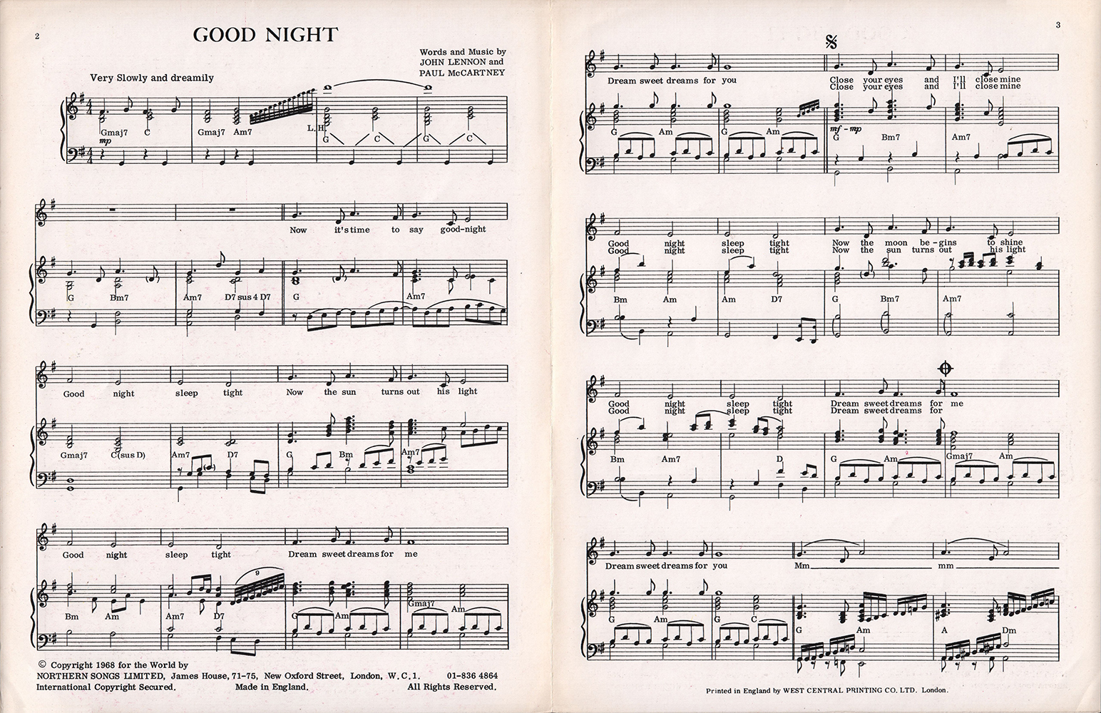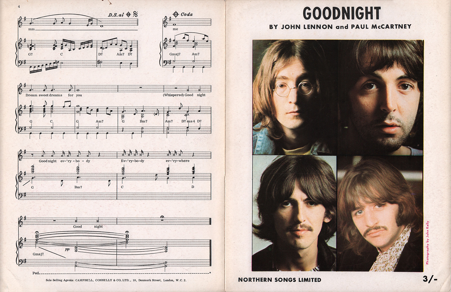Publisher's credit "NORTHERN SONGS LIMITED" was printed at the front of the sheet. Price: 3/-=three shillings. |