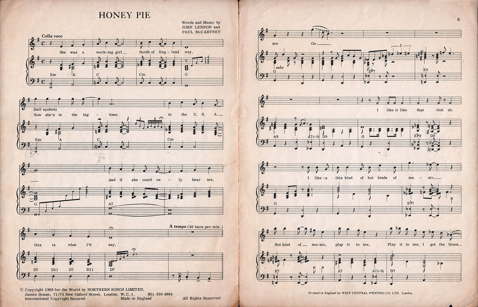 Publisher's credit "NORTHERN SONGS LIMITED" was printed at the front of the sheet. Price: 3/-=three shillings. |