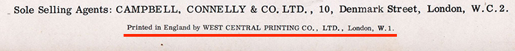 agents: CAMPBELL, CONELLY & CO. LTD., Printed in England by WEST CENTRAL PRINTING CO., LTD. |