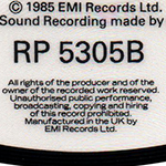 by EMI Records Ltd." was printed on the disc (side-2). |