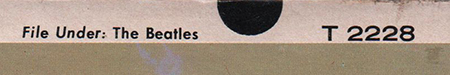 | The exposed portion of the back liner that wrapped around to the top of the jacket has the phrase "File Under: The Beatles (erased the words: Vocal Group ) " as well as a large black dot and the catalogue number. | |||||||||||||||||||||||||||||||||||
