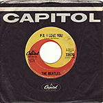 this record sold 180 copies. Just like with Love Me Do, original pressings have larger hand-written matrix numbers hand etched in the trail off area. These copies were issued in a glossy Capitol sleeve. These original pressings are credited to Dick James Ltd. 1964 (around 200 copies) and later 1964 pressings are credited to Concertone (=this record). Copies with the original large matrix numbers but with the later Concertone credit have been verified and are not from of the original run. Although still quite hard to find, Later early 1964 repressings exist with the large matrix number and no dash or number. Being good for a few thousand records, stampers were most likely not thrown out after a small run, and later re-used when repressings were needed. This 45 was also dubbed fron the UK single. (from "capitol6000.com") |