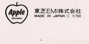 Early pressings have a wide type obi (4.0cm). It has a green background with Apple logo and priced ¥600 on obi strip. |