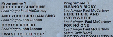 EMI originally issued the Beatles UK albums on 8-track tape with re-arranged running orders, the reason for this was that because of the 8-track stereo tapes, it was necessary to adjust the endless tape's four tracks to be approximately the same length. | |||