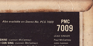 Parlophone label with silver print: the name "THE GRAMOPHONE CO. LTD.(capital letter)" on the outer rim, the "SOLD IN U.K." remark, and the "(P) 1966" statement. Sleeves for "Revolver (mono)" did two London’s of printing house: Ernest J. Day & Co Ltd. and Garrod & Lofthouse Ltd. This issue has a sleeve made by Garrod & Lofthouse. The mono and stereo releases were issued in separate catalog number series until early 1966. In 1966, the catalog number series was restarted at 7001 with mono and stereo releases now having the same catalog numbers. First pressing with mispressing. Side 2 matrix no.: XEX 606-1 have "Remix 11" of "Tomorrow Never Knows". When "Revolver" was initially mixed a different master for "Tomorrow Never Knows" was sent off to be pressed. This mix is known as "Remix 11". Although subtle, it is different to the standard "Remix 8" which was ultimately to replace it. The story goes that each group member was given the first copies from the production line and John went to listen to it. But, it turned out that he was unhappy with the mix or that the wrong one had been used and he informed George Martin. Production was then stopped as the new masters were cut and the pressing plates were replaced. First presses have a side 2 matrix number of XEX 606-1 whereas the standard presses have XEX 606-2 and beyond. (According to "TheBeatles-Collection.com") Second label has Sans-serif print and song name “DOCTOR. ROBERT” on the Side 2. |