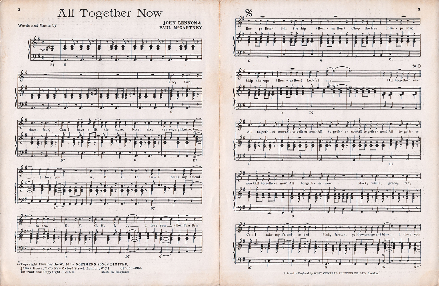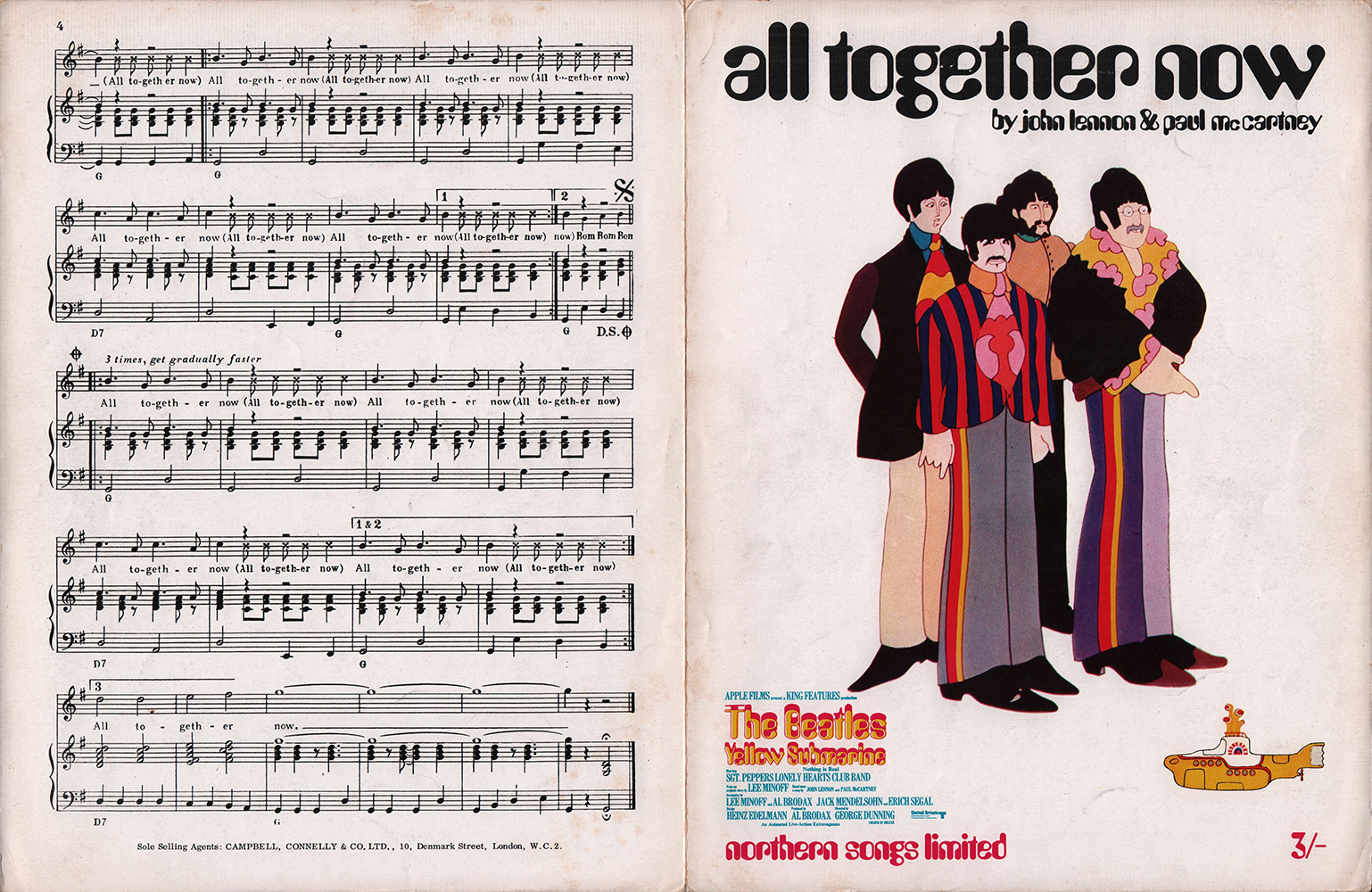 Publisher's credit "northern songs limited" was printed at the front of the sheet. Price: 3/-=three shillings. |