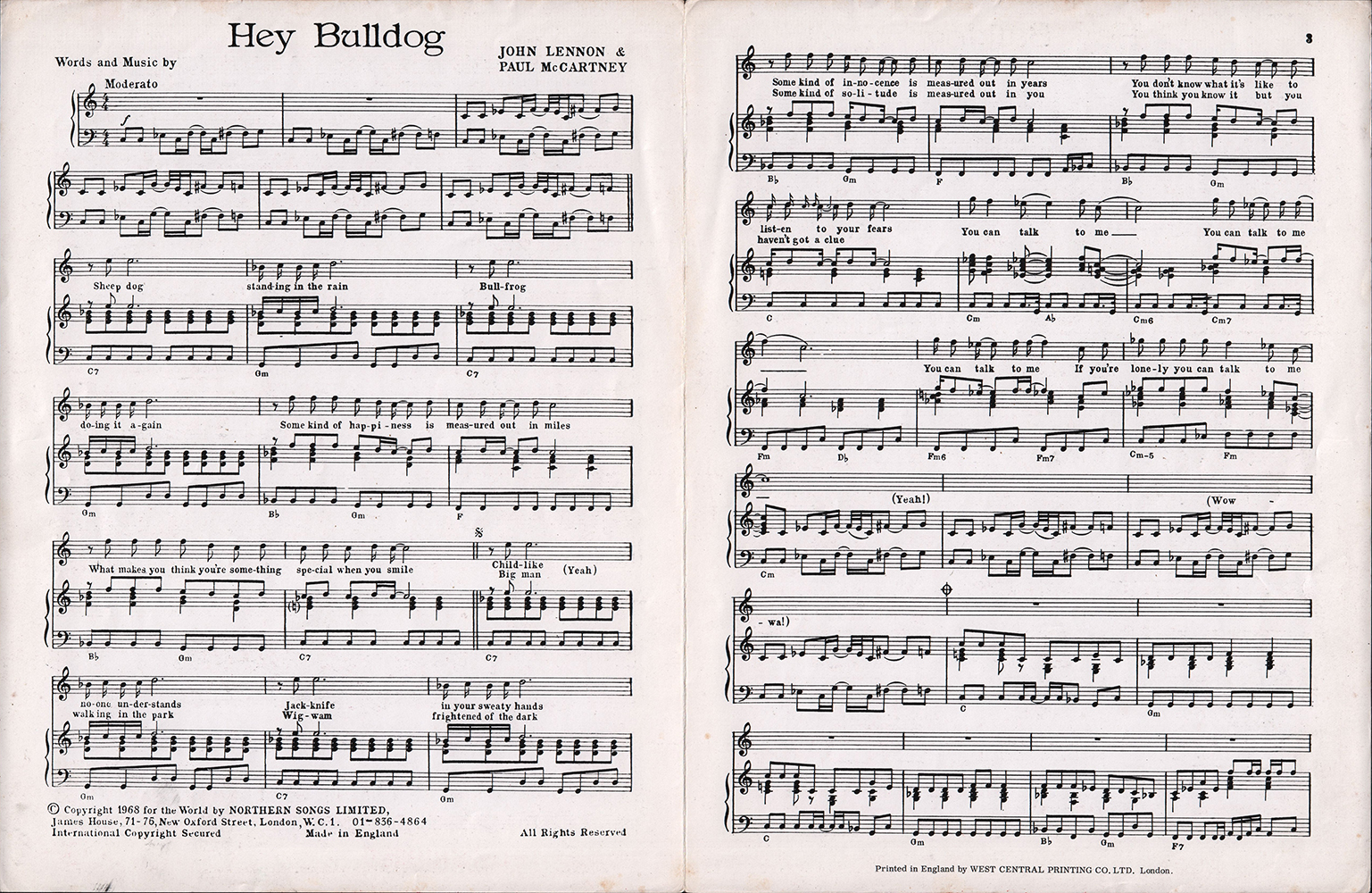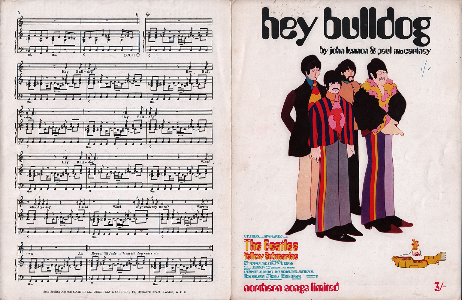 Publisher's credit "northern songs limited" was printed at the front of the sheet. Price: 3/-=three shillings. |