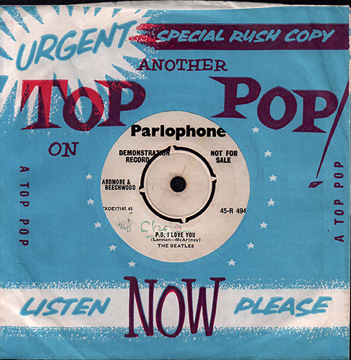 EMI records were issued in "Top Pop" sleeves. Demo's from "Love Me Do" untill "A Hard Day's Night" would have featured a blue or red sleeve. |